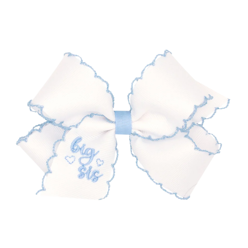 WEE ONES KING WHITE W/ MILLENNIUM BLUE MOONSTITCH BIG SIS BOW