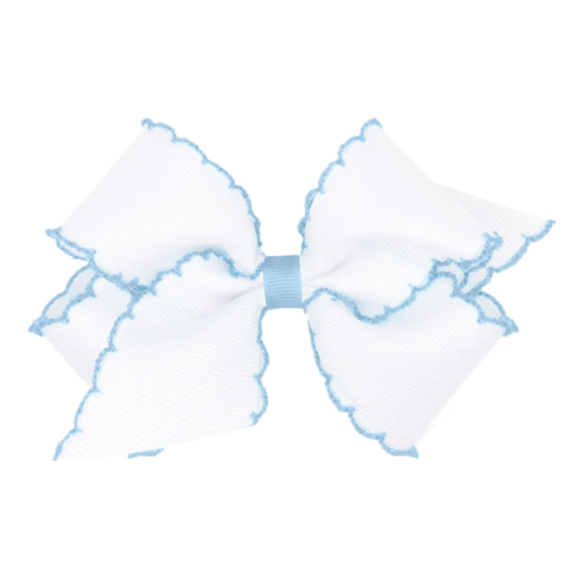 Wee Ones Medium White w/ Millennium Blue Moonstitch Bow