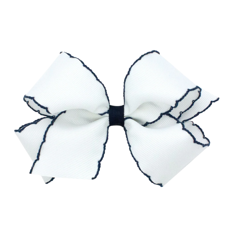 Wee Ones Medium White w/ Light Navy Moonstitch Bow