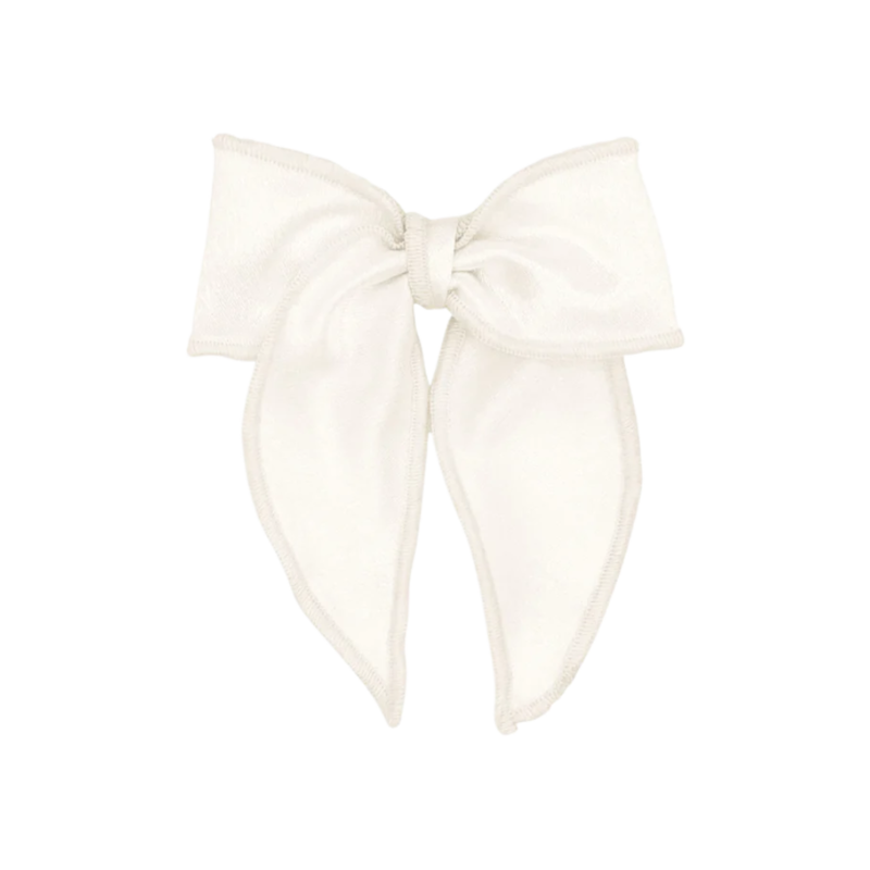 WEE ONES SMALL OFF WHITE SATIN BOWTIE W/ TWISTED WRAP AND WHIMSY TAILS