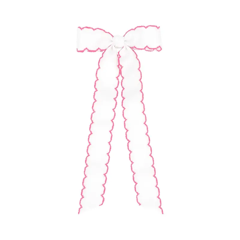Wee Ones Tiny White w/ Light Pink Moonstich Bowtie w/ Streamer Tails