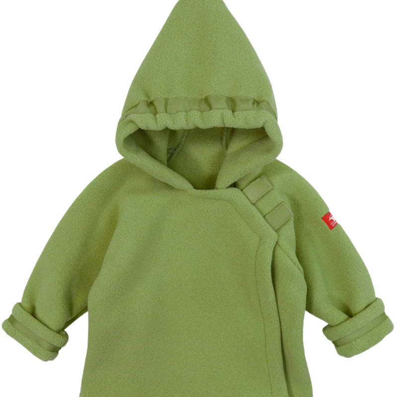 - Hood with grosgrain trim, straight neck, long sleeves with grosgrain-trimmed cuffs
