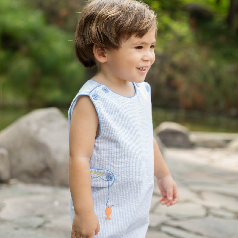 Zuccini Leo Short - Blue Seersucker/Fishing Lure
