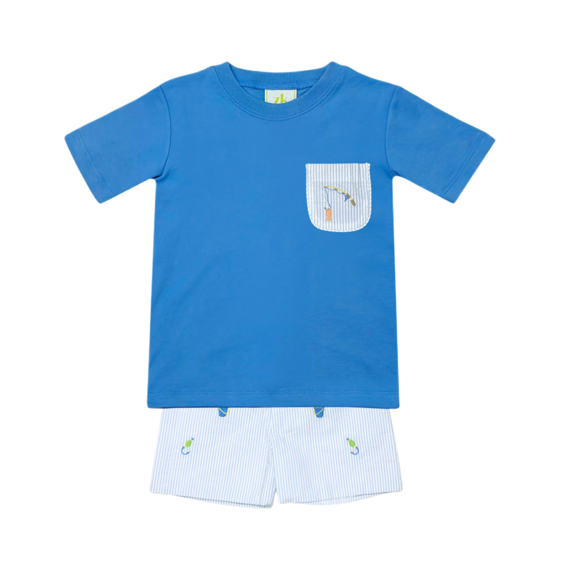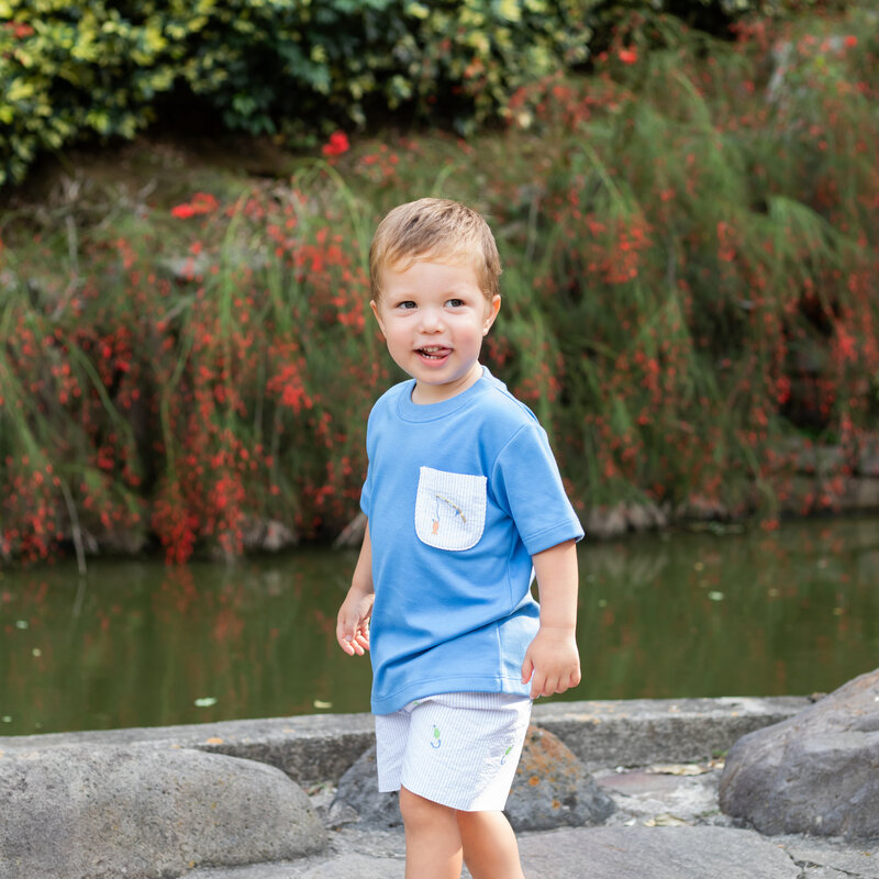 Zuccini Leo Short - Blue Seersucker/Fishing Lure